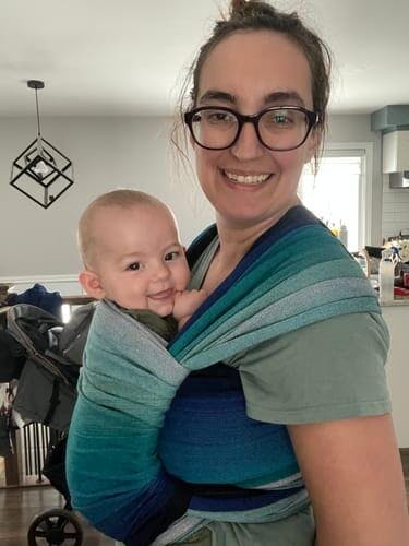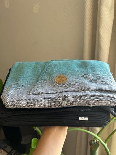 A 100% cotton woven wrap in a beautiful gradation of blues.