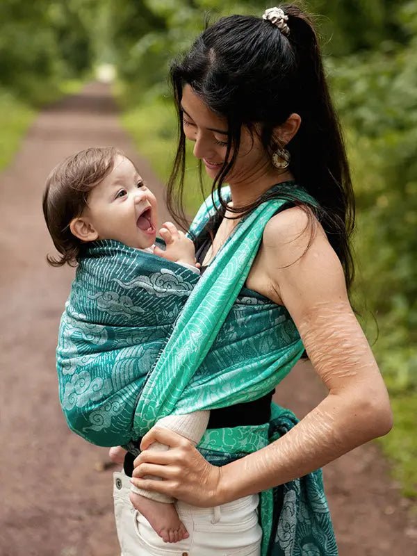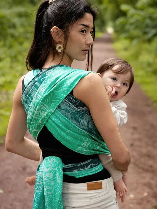 Infinitely adjustable, Oscha woven wraps can be tied in a variety of ways.