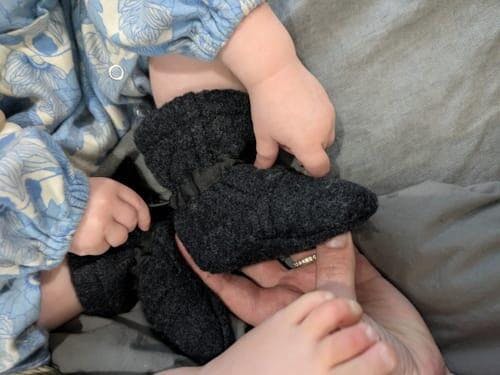 Wool's natural dirt-repelling properties mean that booties usually only need to be washed very rarely.