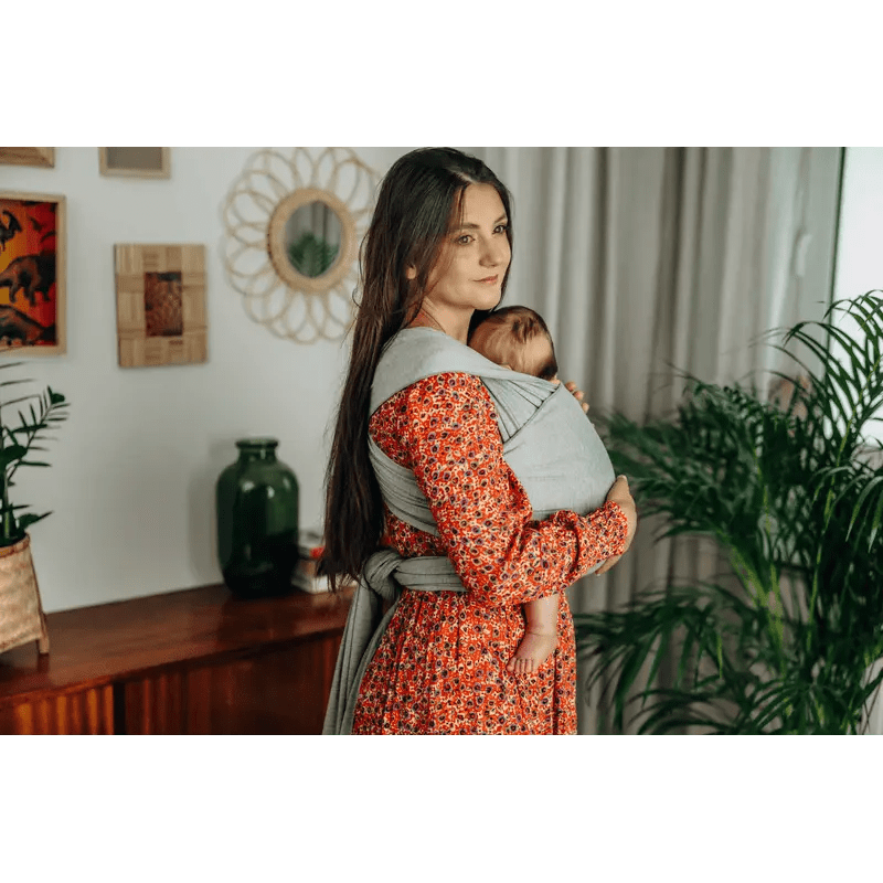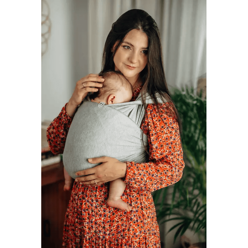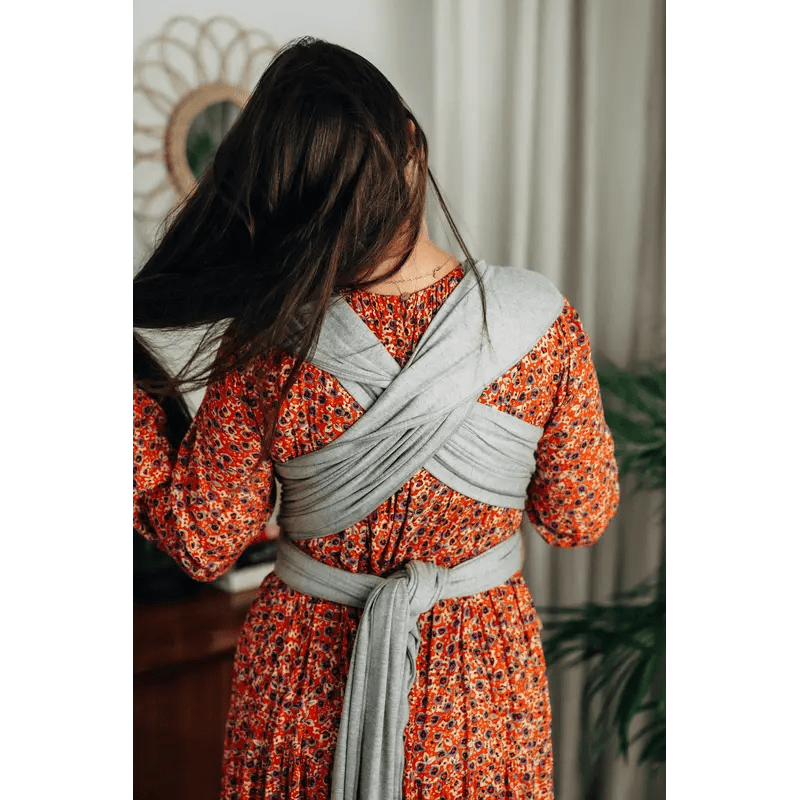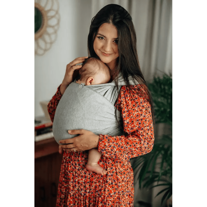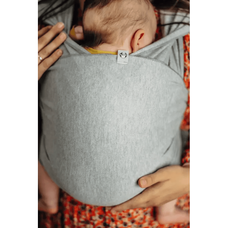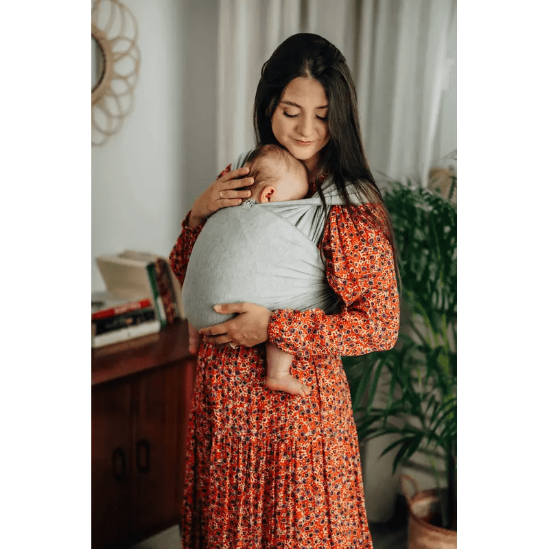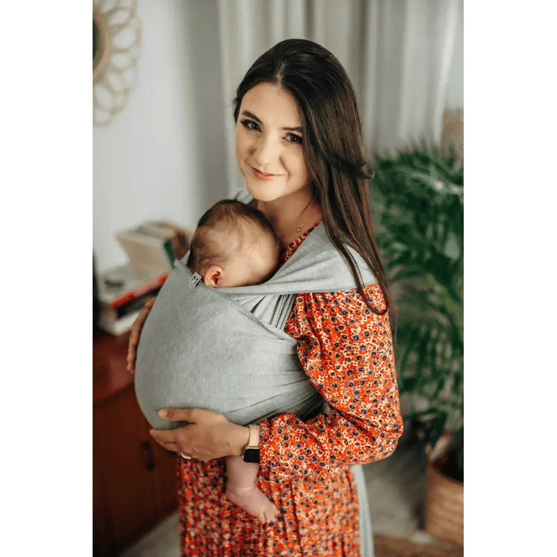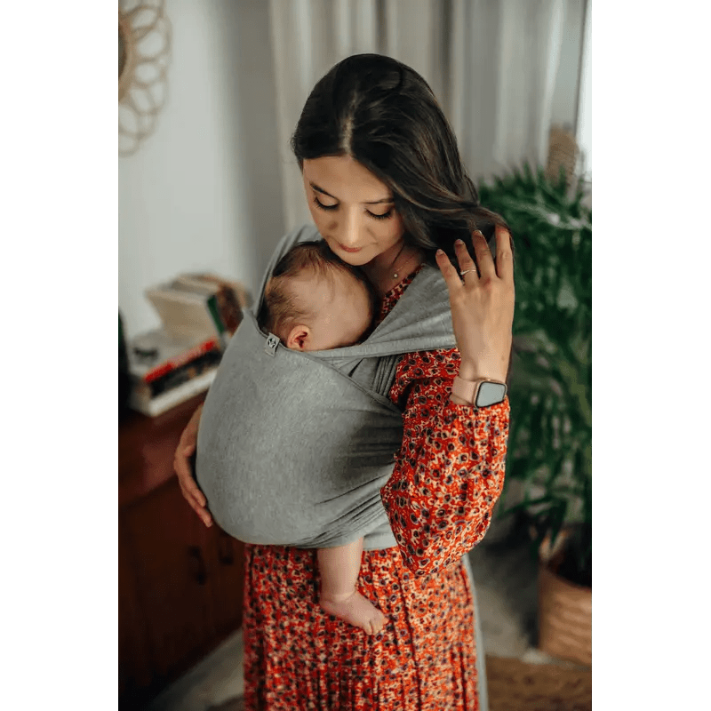 You can tie it on and then insert baby so you do not have to tie around the baby. You can put the baby in and out of it during the day without tying the sling again. Choose a stretchy wrap if you want a simple and comfortable solution for the early months