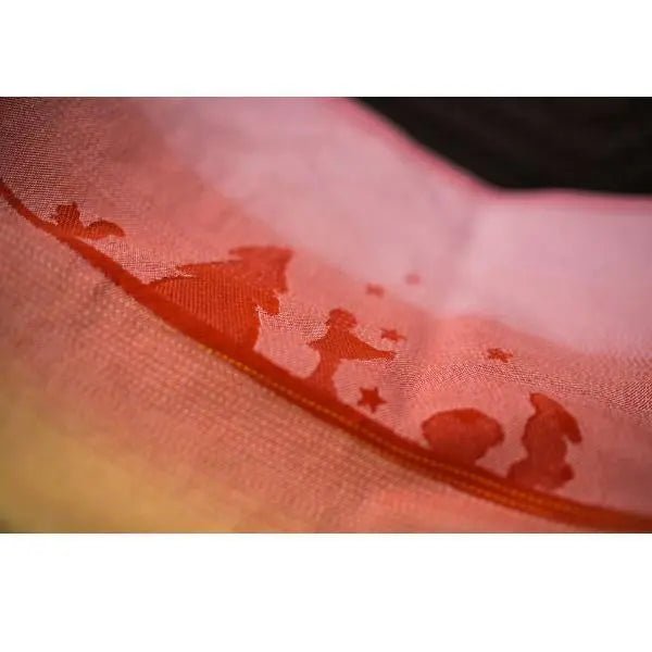 As usual the cotton is 100% GOTS certified and dyed with nontoxic colouring. A good medium weight, the fabric is soft and has the right diagonal stretch and texture meaning the wrap will easily mold to the wearer and baby providing optimal comfort all while supporting the baby well, regardless of being worn on front, back, or your hip.