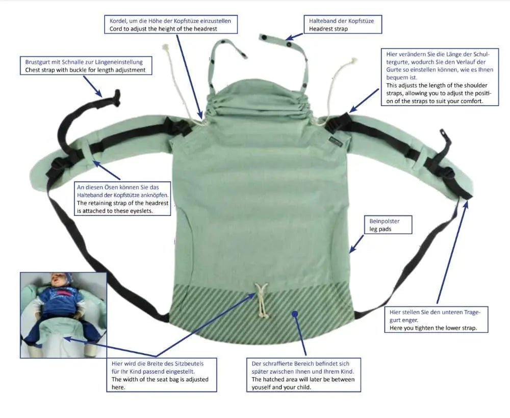 Back panel made from DIDYMOS wrap fabric with diagonal stretch for a supportive, form-fitting pouch