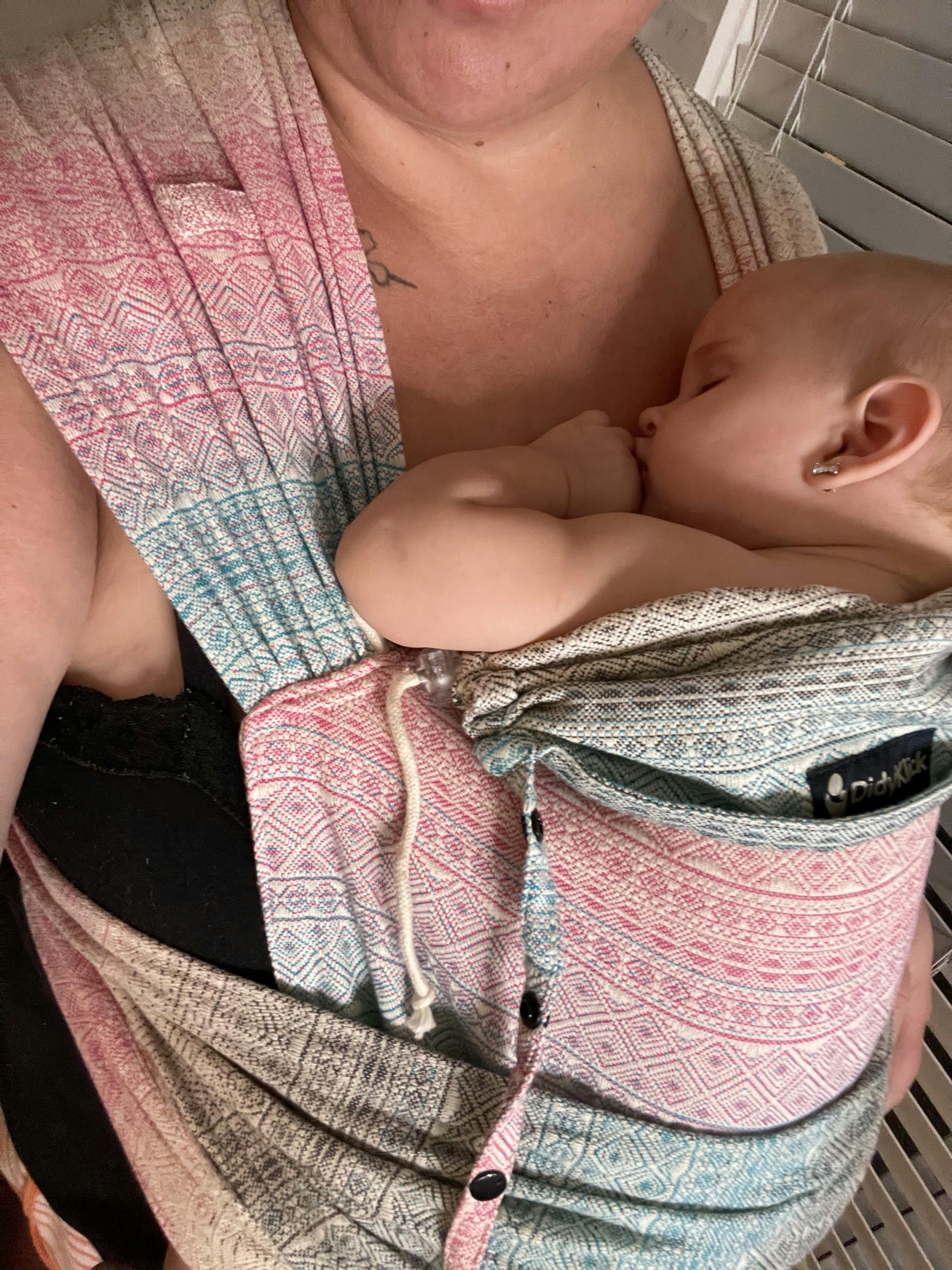 One of Didymos most beloved wraps, Aurora, magically transformed into a half-buckle carrier, the DidyKlick! Simply buckle around your waist, place your little one on your body, smooth up the panel, tie the shoulder straps and you are ready. Easily carry your little one on your front, hip and back while fully supporting them in a comfortable, natural, position.