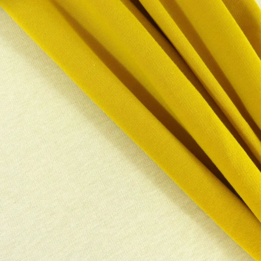 Doubleface Jersey Harvest Silk is knitted from best organic natural white and harvest gold cotton plus a dash of natural silk adding a soft shine to the wrap. A Doubleface fabric, it has differently colored faces – one dominated by natural white, the other one by harvest gold cotton.