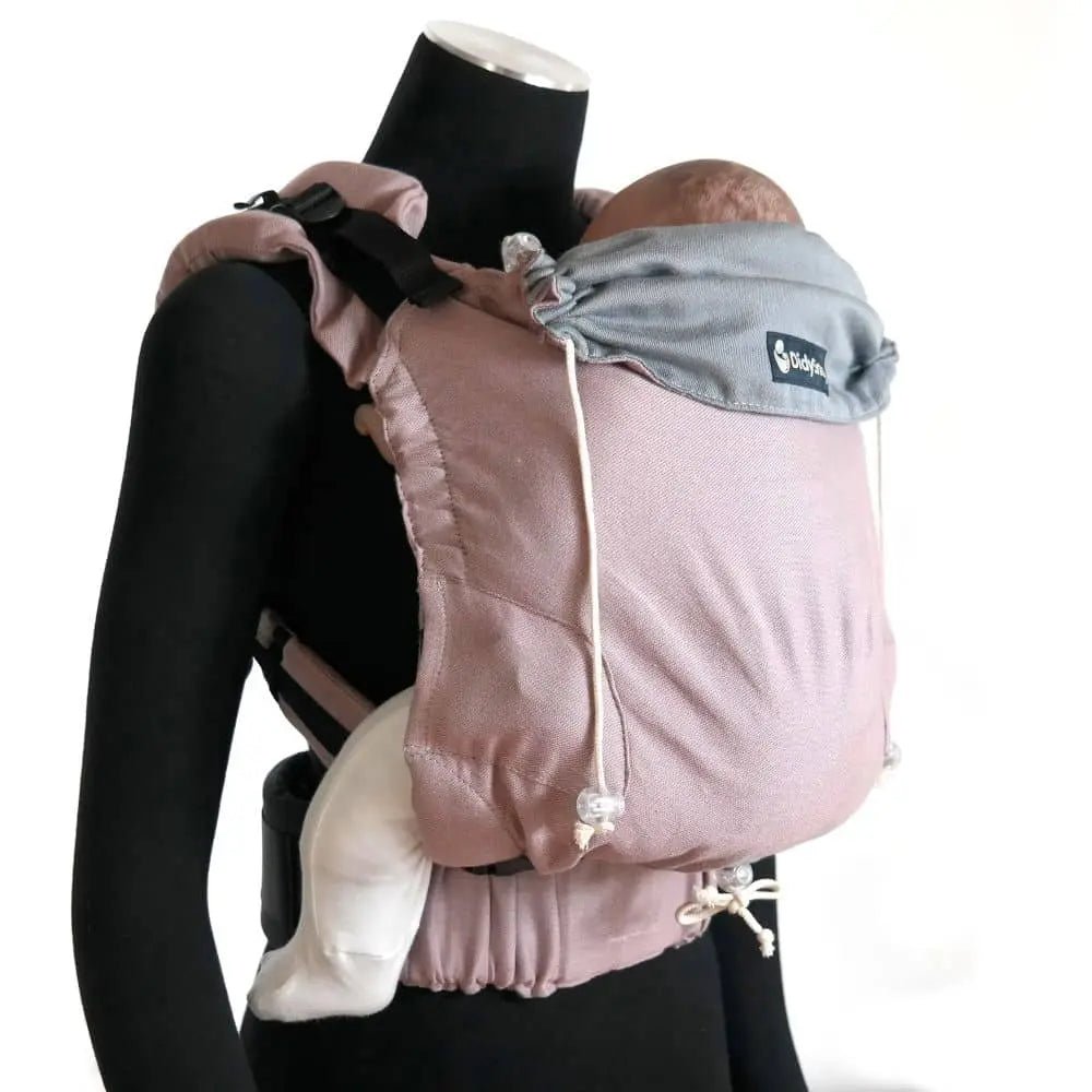 For DidySnap 4u model Doubleface Rosalinde we used a sturdy doubleface wrap fabric woven with dusty pink and grey organic cotton. A doubleface weave, the fabric features pink on one side and grey on the other adding lovely contrasts to the DidySnap.