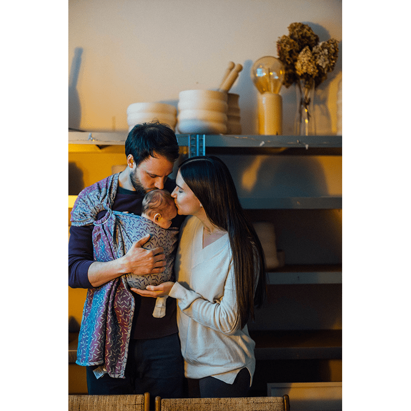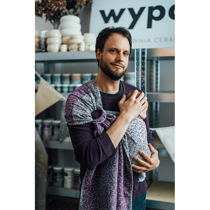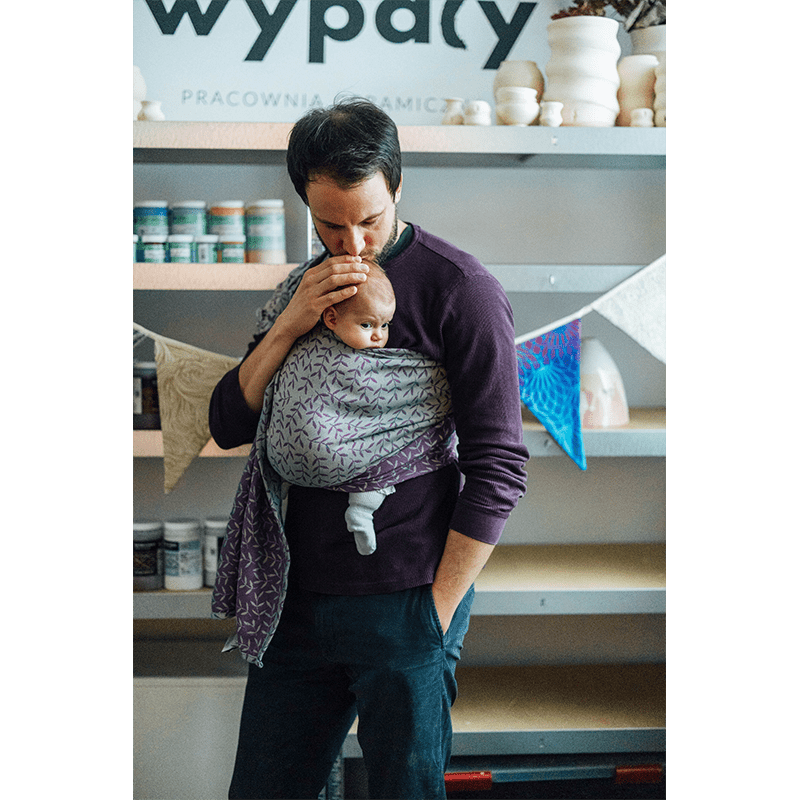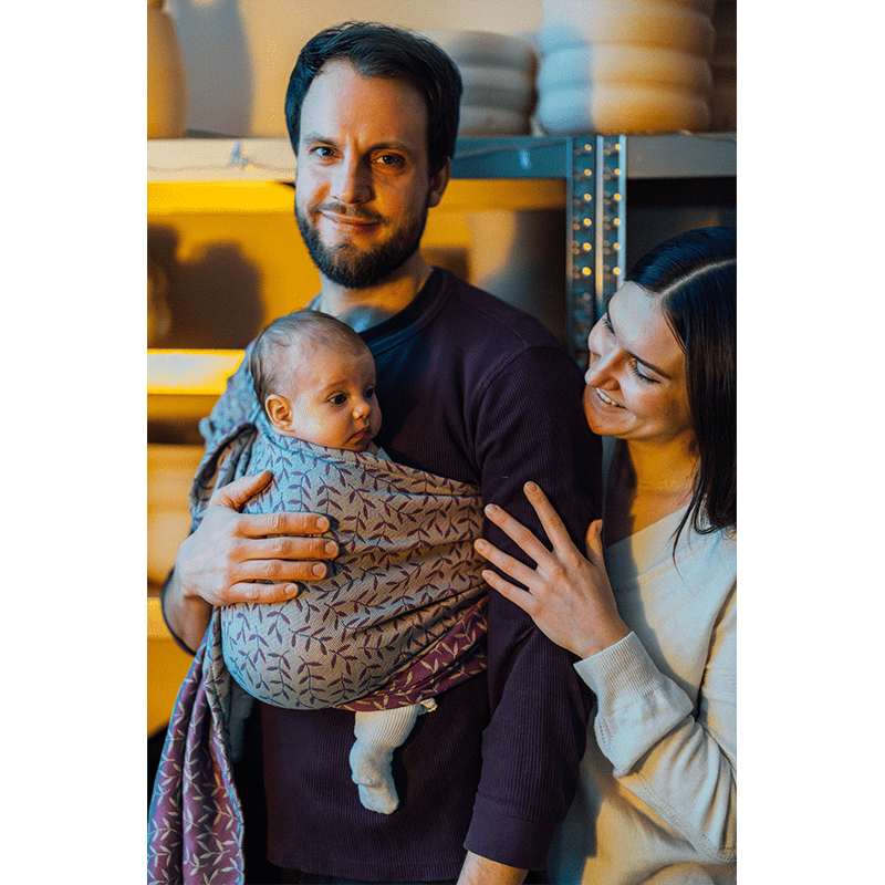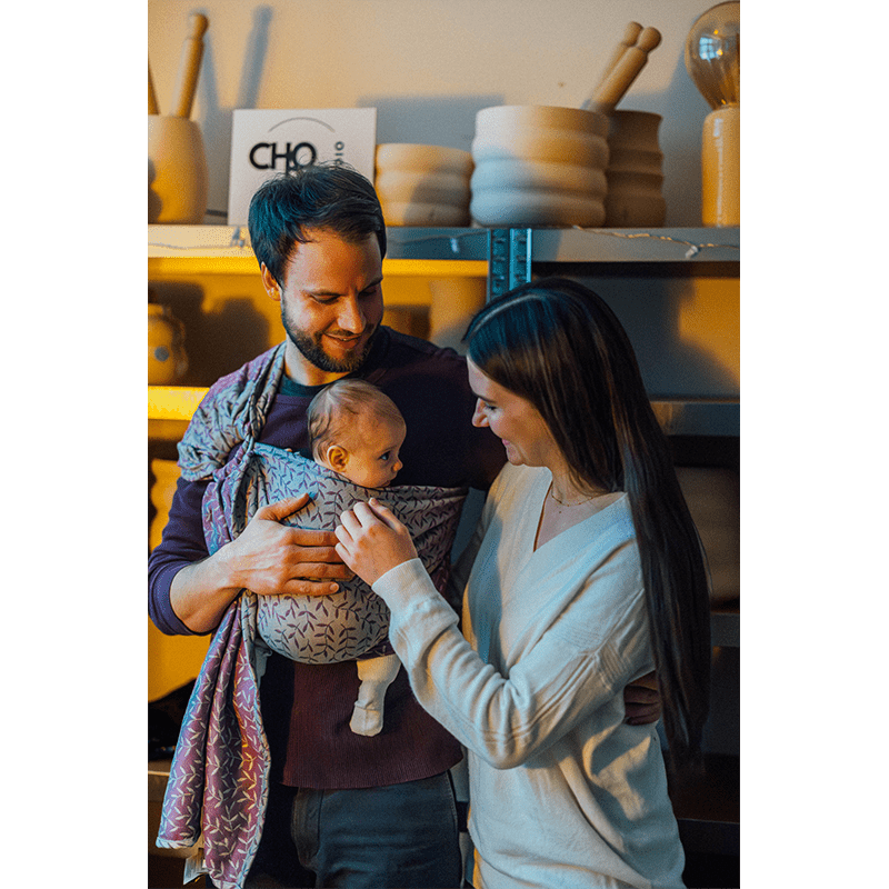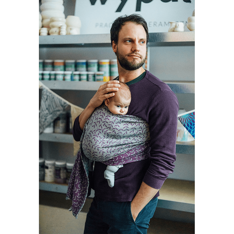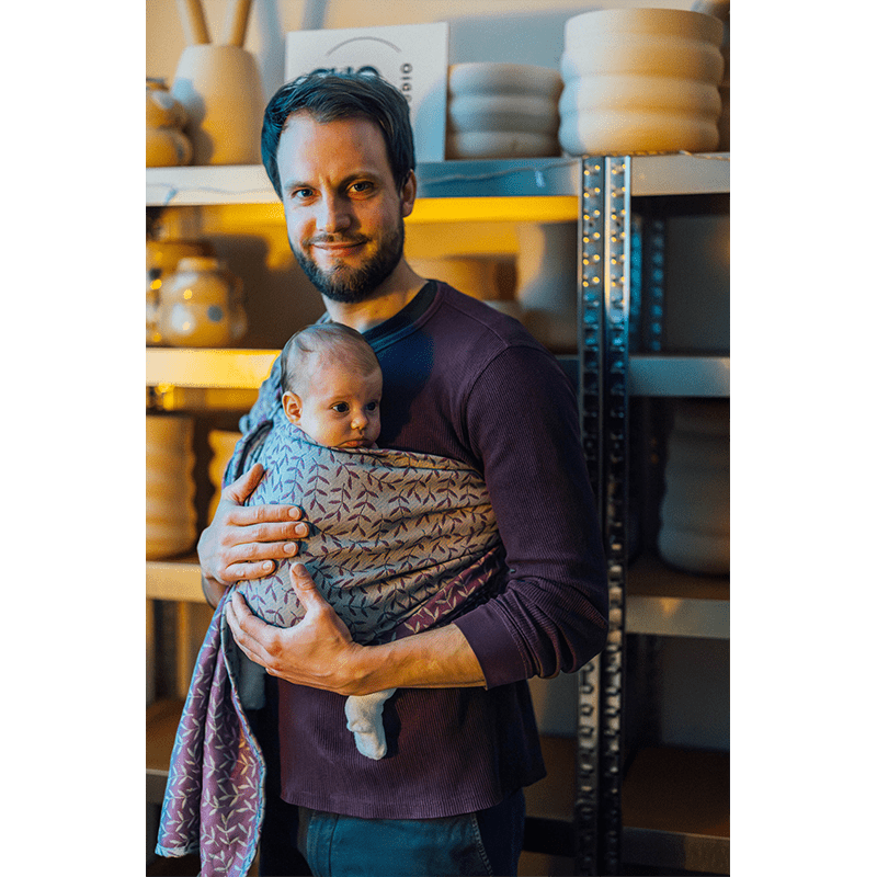 No tying necessary! Just put the sling through the rings, put the baby in the pouch and tighten. It is lightweight and takes up very little space.
