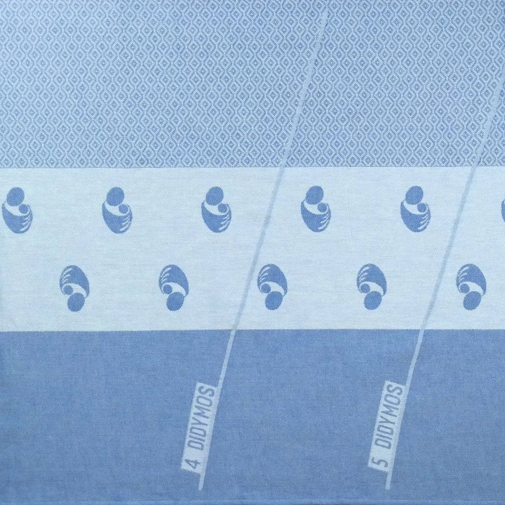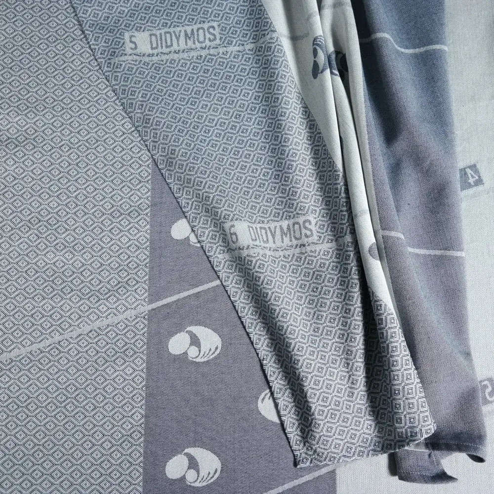 Crafted from high-quality organic cotton the wrap is divided into three sections with different patterns: diamond pattern, Didymos logo, and solid color. S