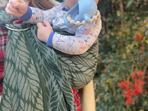 TheĀ Forest Trias Ring Sling combines organic cotton, Tussah silk, and hemp in the signature Trias double weave, providing a perfect blend of softness, strength, and breathability. Featuring a striking Fir Green and White design, this ring sling offers both elegance and functionality for caregivers and their little ones.