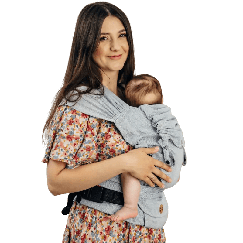 Iceberg Hybrid Half Buckle by Lenny Lamb. From birth to about 24 months, a comfortable carrier that is easy to use and distributes weight well.