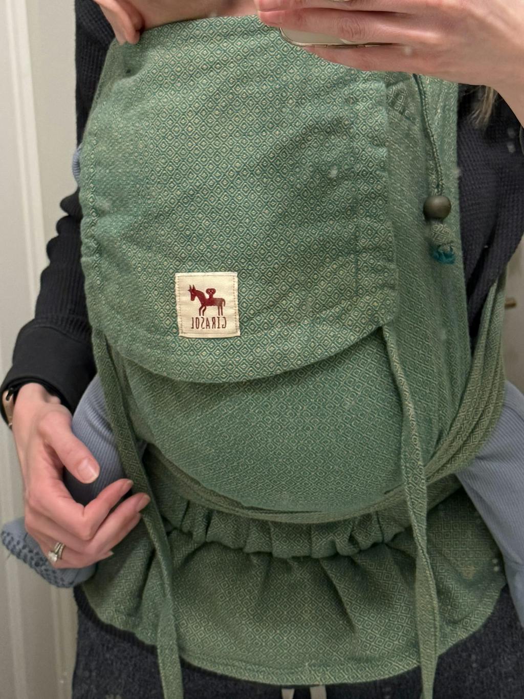 - Two-layer body panel — double the handwoven wrap fabric for a mouldable, cushy carry that hugs your baby.