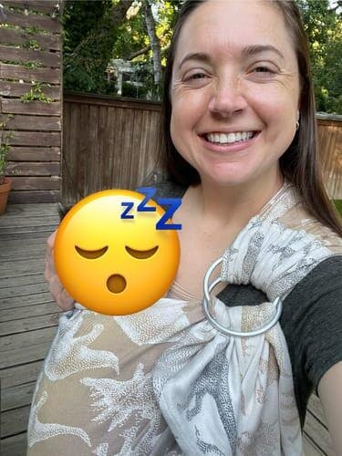 No tying necessary! Just put the sling through the rings, put the baby in the pouch and tighten. It is lightweight and takes up very little space.