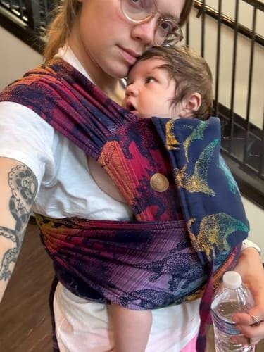The simplicity and comfort of a soft structured carrier and the versatility of a wrap, this hybrid carrier is a hit, the WrapTai baby carrier. Wear it Tummy to tummy, on your hIp, or on you back from 4 months up.