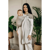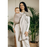 No tying necessary! Just put the sling through the rings, put the baby in the pouch and tighten. It is lightweight and takes up very little space.