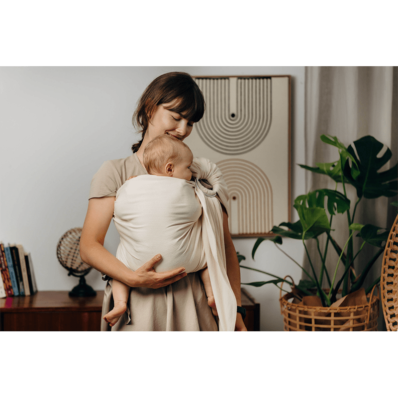 No tying necessary! Just put the sling through the rings, put the baby in the pouch and tighten. It is lightweight and takes up very little space.