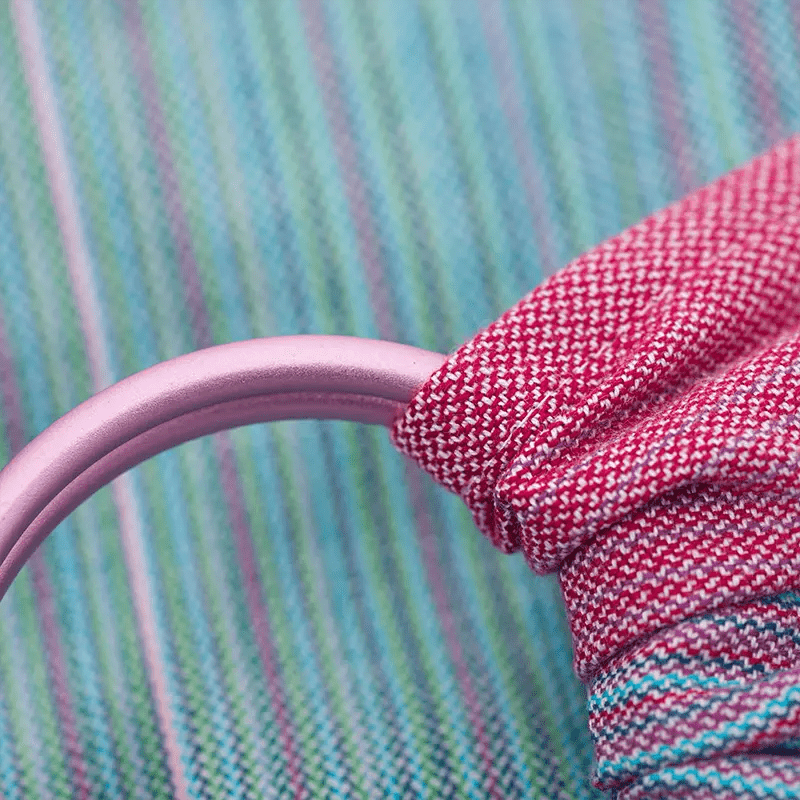 The Girasol Ring Sling - a convenient, and beautiful, baby carrier is made from the material of a woven wrap and specially made aluminium quality rings.