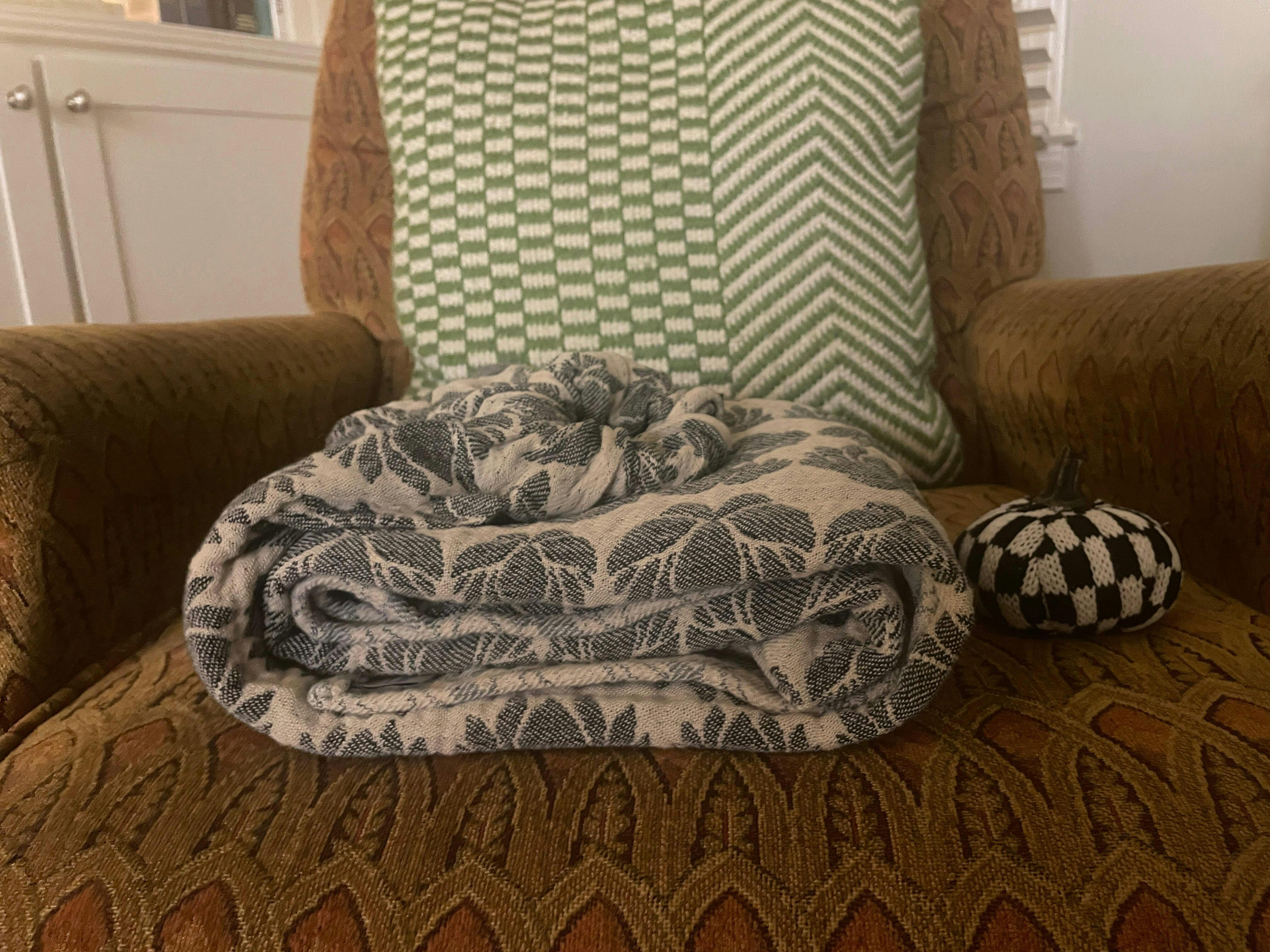 The elegant pattern in anthracite and silver on a natural white warp exudes timeless harmony. The hollow weave makes even heavier children feel weightless, while the fabric becomes wonderfully soft with use.