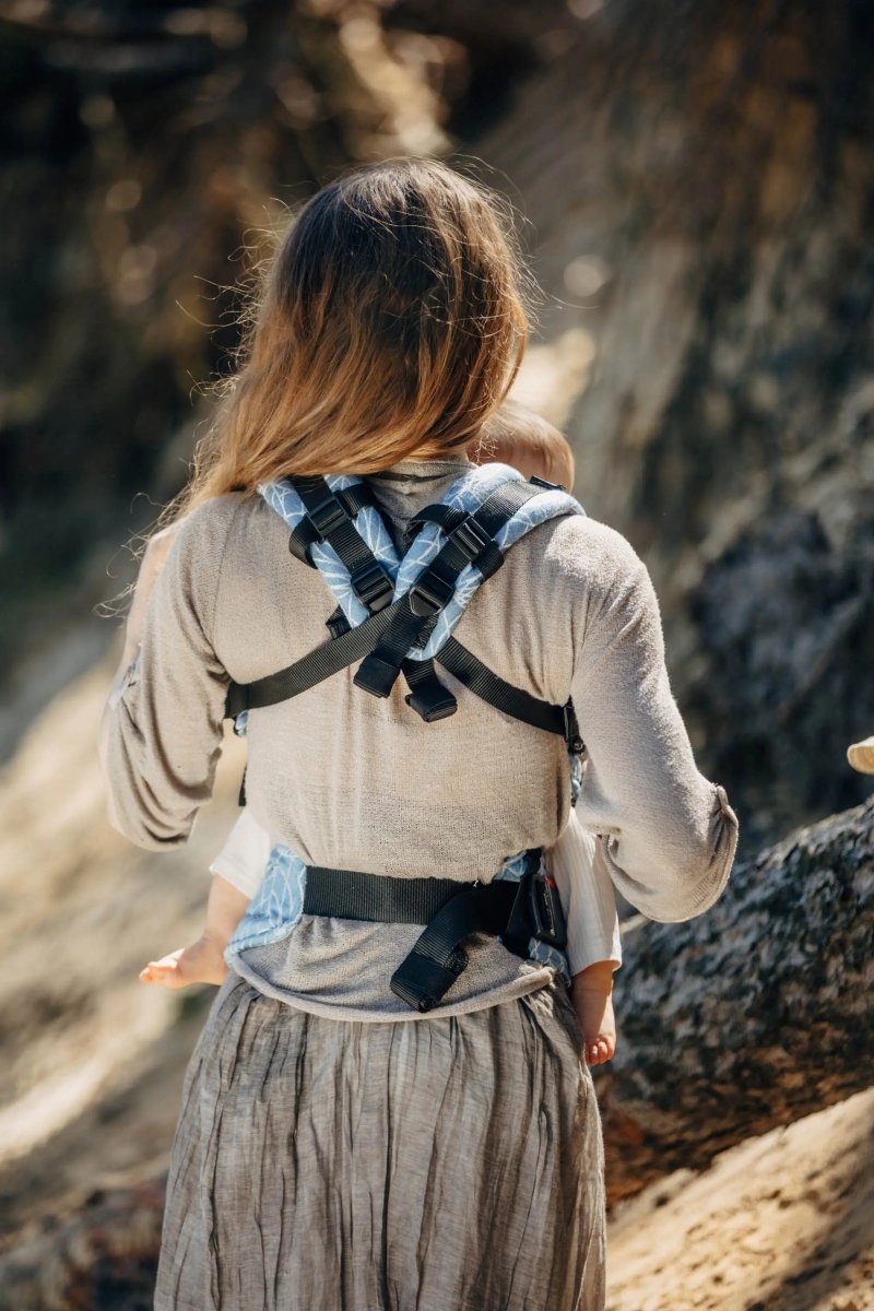 ATTENTION: Actual colors and pattern placement may vary from pictures. The color of the buttons can vary from the one presented in the pictures. Depending on the LOT of the product, the straps regulating the size of the carrier's panel can be solid black or in the colorway of the carrier.