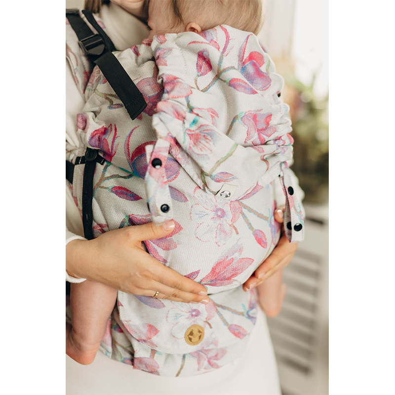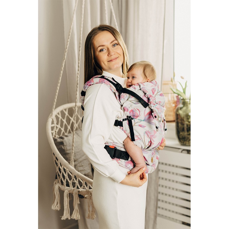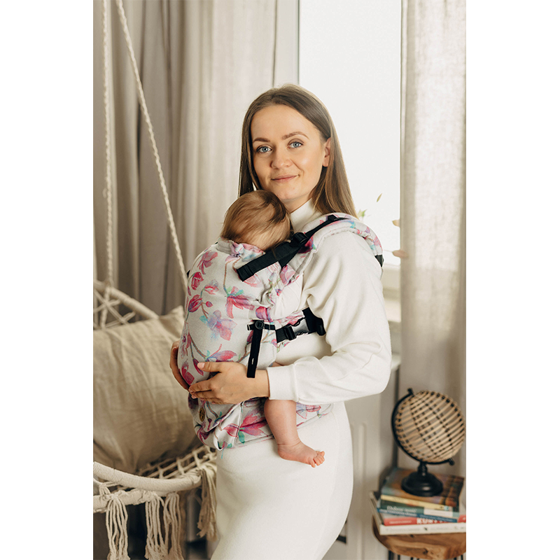 ATTENTION: Actual colors and pattern placement may vary from pictures. The color of the buttons can vary from the one presented in the pictures. Depending on the LOT of the product, the straps regulating the size of the carrier's panel can be solid black or in the colorway of the carrier.