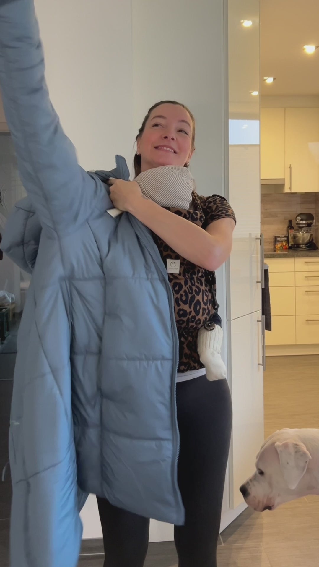 The coat features expandable side zips for a flexible fit during pregnancy or a relaxed, oversized look. Once your baby arrives, simply zip in the adjustable baby insert at the front or back for hands-free babywearing. When you're not with your little one, close the side zips for a sleek silhouette or leave them open for added comfort. Thoughtfully designed by moms, this coat includes cozy fleece-lined pockets, fitted cuffs, and a warm hood for added protection against the cold.