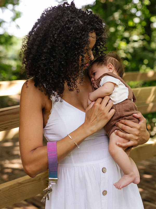Carry your own Oscha keepsake around with you! This handy keyring features a piece of Matrix Aura jacquard fabric in rainbow fade.