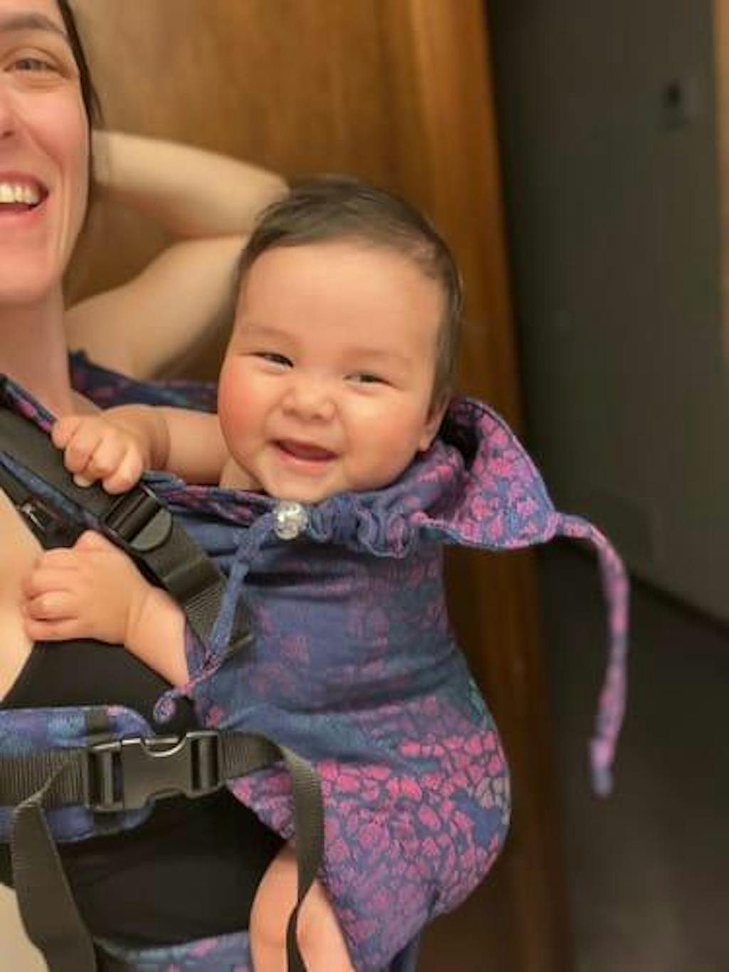 - Wrap-quality fabric — the body panel is made from Didymos woven wrap cloth that moulds, breathes, and supports.