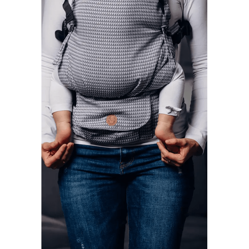 ATTENTION: Actual colors and pattern placement may vary from pictures. The color of the buttons can vary from the one presented in the pictures. Depending on the LOT of the product, the straps regulating the size of the carrier's panel can be solid black or in the colorway of the carrier.