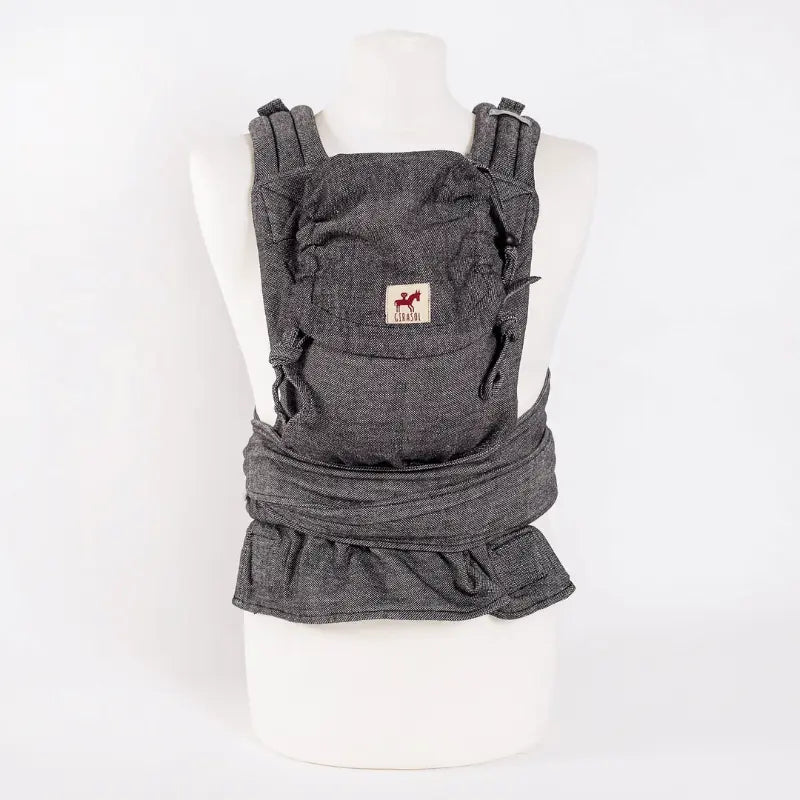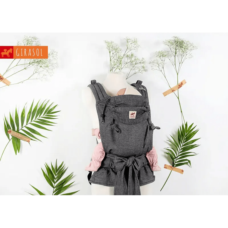 The Reverse Tulum MySol half buckle by Girasol combines the comfort of a woven wrap with the convenience of a buckle carrier. The body panel is handwoven in Guatemala from 100% recycled cotton in a cross twill weave. Made from recycled cotton as part of Girasol's Recycling Collection. Padded shoulder straps and a structured buckle waistband make it easy on and off.