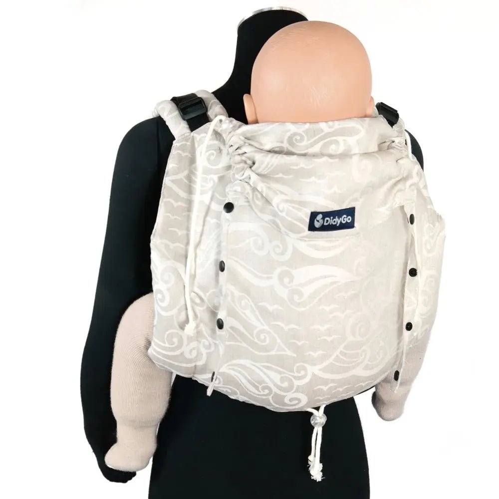 DidyOnbuhimo model Oceanis is tailored with breathable cotton linen wrap fabric. Soft and pliable, it is ideal for carrying newborns, yet supportive enough to offer support for wearing a heavier baby as well.