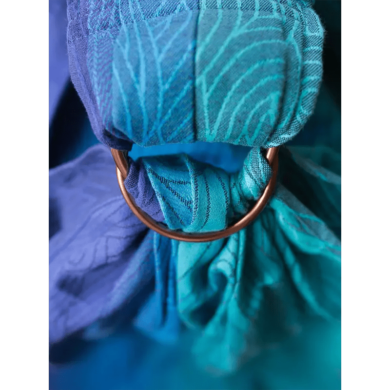Woven on a gorgeous fade of fresh ocean blues this beautiful ring sling features a blend of soft organic cotton and strong hemp, making this baby sling wonderfully supportive.