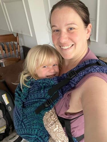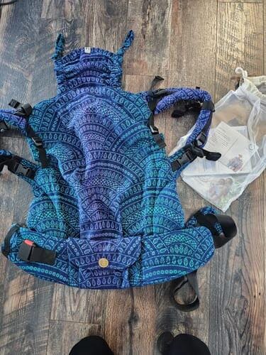Peacock's Tail Provance Preschool Carrier by Lenny Lamb. For your toddlers and preschoolers, an adjustable and comfortable full buckle carrier.