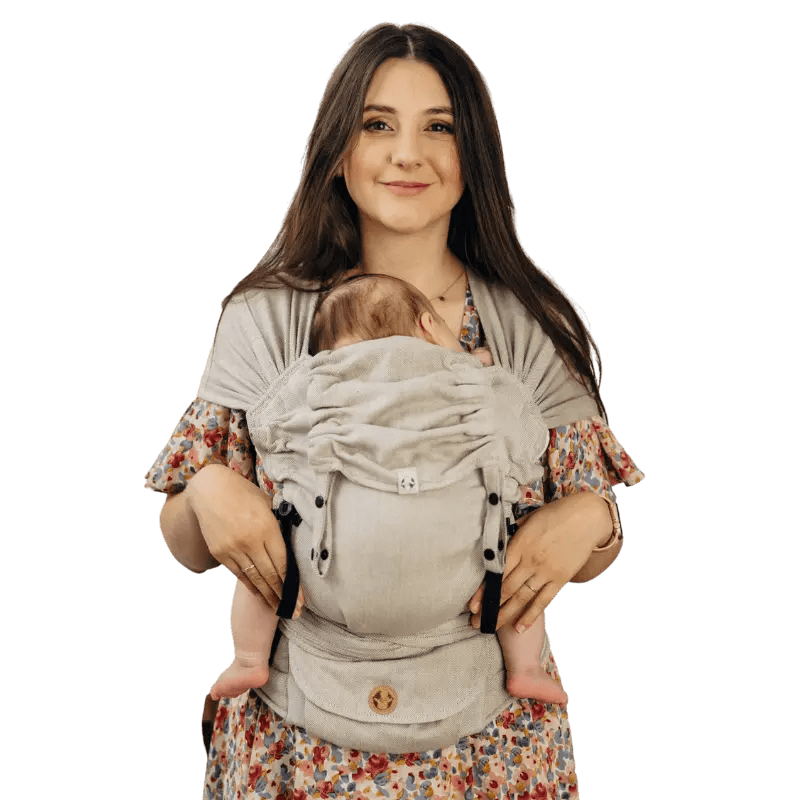 Peanut Hybrid Half Buckle by Lenny Lamb. From birth to about 24 months, a comfortable carrier that is easy to use and distributes weight well.