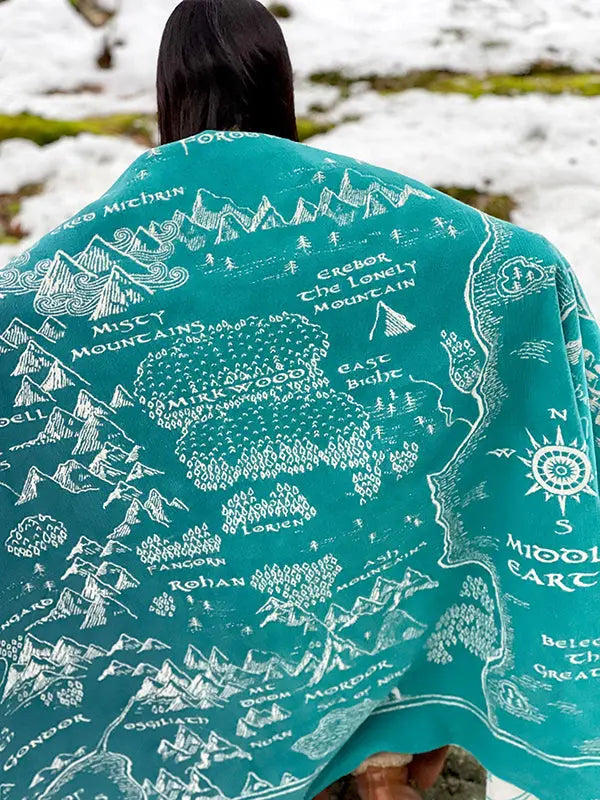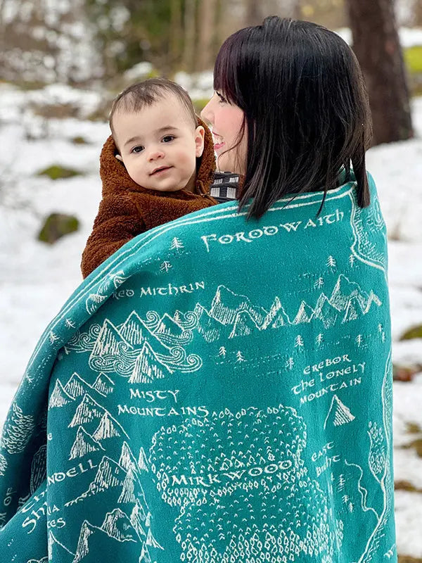 This beautiful brushed organic cotton throw features Oscha's Realm of Middle-earth design on a stunning deep teal gradation. Velvety and snuggly soft, this throw is the perfect addition to any home. It will make a beautiful bed cover or a super snuggly couch blanket.