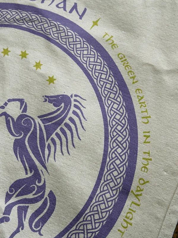 The Rohan bag is a lovely large sized 100% organic cotton tote bag perfect for everyday use. Ideal for fans of The Lord of the Rings or any member of the Rohirrim to carry all their treasures in.
