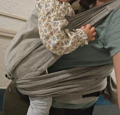 The DidyKlick combines the support of a woven wrap with the ease of a full buckle carrier. It’s adjustable for most body shapes and sizes, and unlike many carriers, it works from about 9 months through 5 years (15–55 lbs / 7–25 kg).
