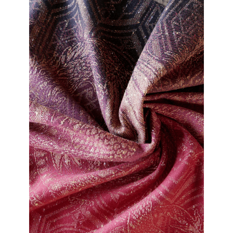 Confetti Shantung Tussah silk is a wonderfully strong and supportive yarn giving comfy carries for little ones through to toddlerhood. The nature of the yarn provides perfect moldability and ‘cush’, which feels very comfortable to wear, especially with bigger kids.