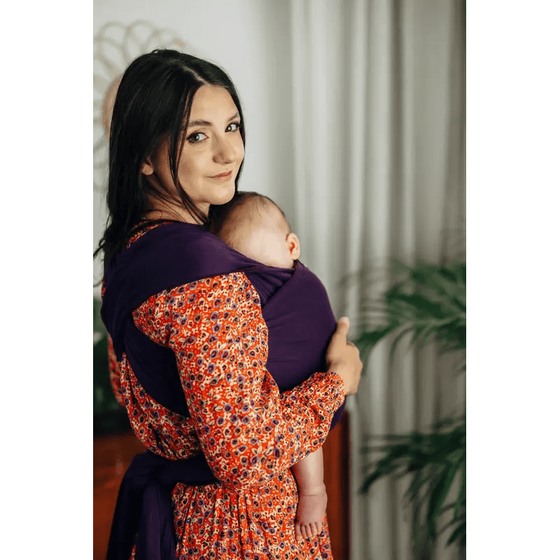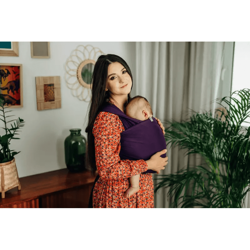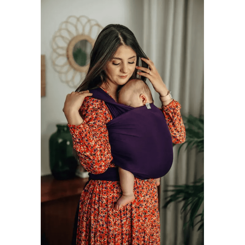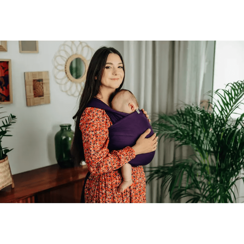 You can tie it on and then insert baby so you do not have to tie around the baby. You can put the baby in and out of it during the day without tying the sling again. Choose a stretchy wrap if you want a simple and comfortable solution for the early months