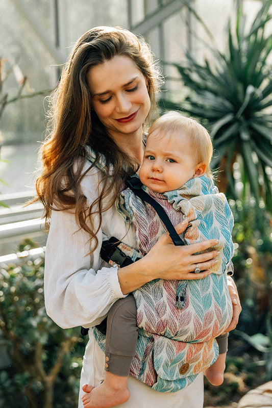 ATTENTION: Actual colors and pattern placement may vary from pictures. The color of the buttons can vary from the one presented in the pictures. Depending on the LOT of the product, the straps regulating the size of the carrier's panel can be solid black or in the colorway of the carrier.