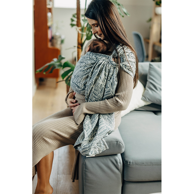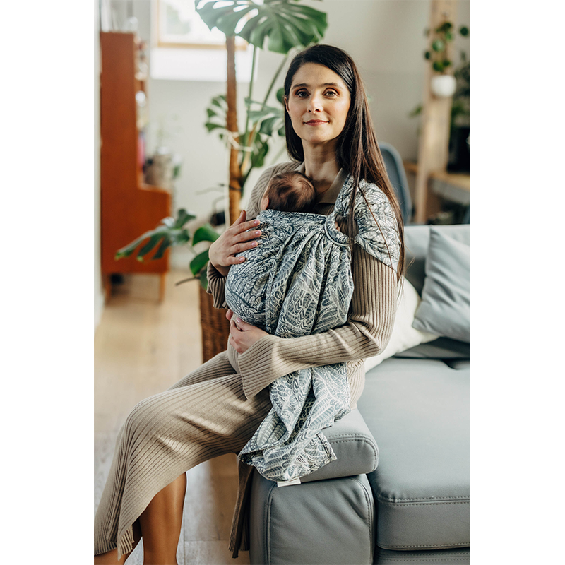 No tying necessary! Just put the sling through the rings, put the baby in the pouch and tighten. It is lightweight and takes up very little space.