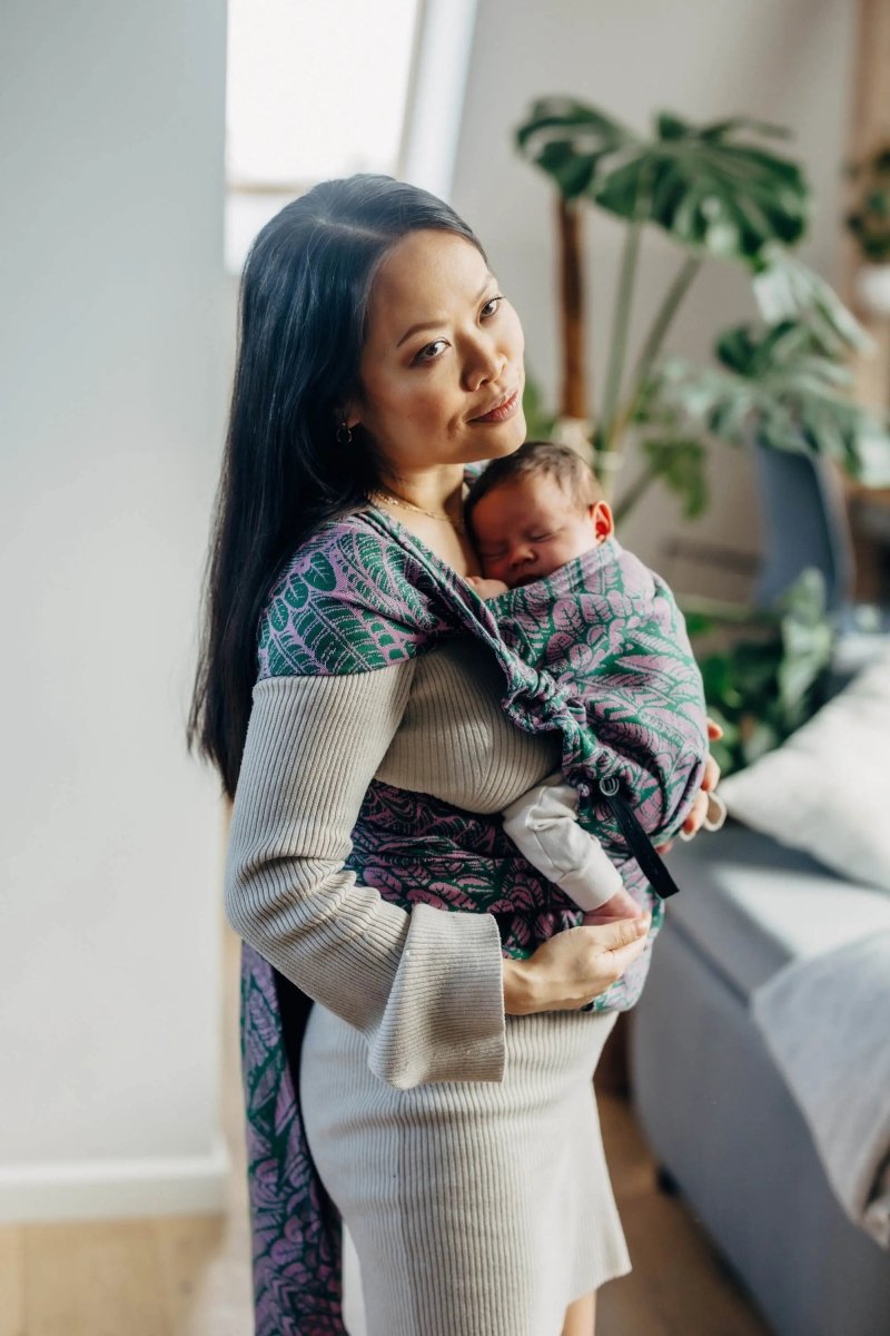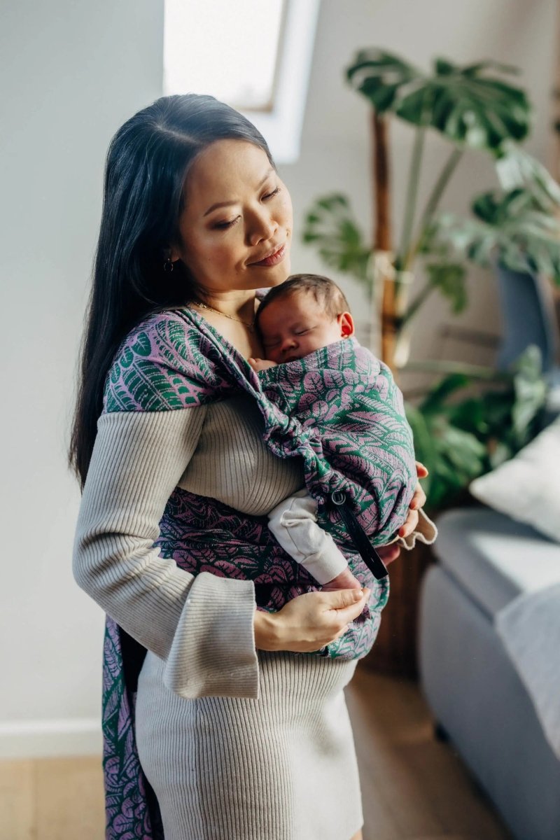 Wild Soul Sassy Half Buckle by LennyLamb. From birth to about 24 months, a comfortable carrier that is easy to use and distributes weight well.
