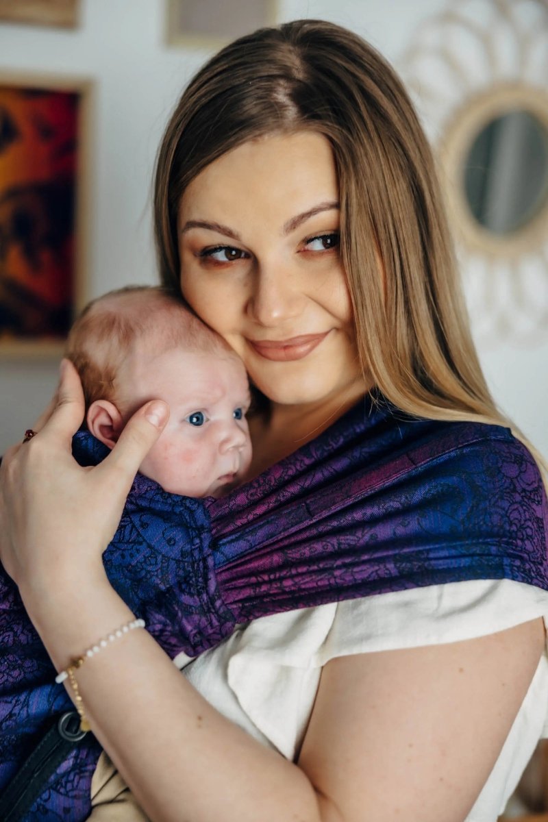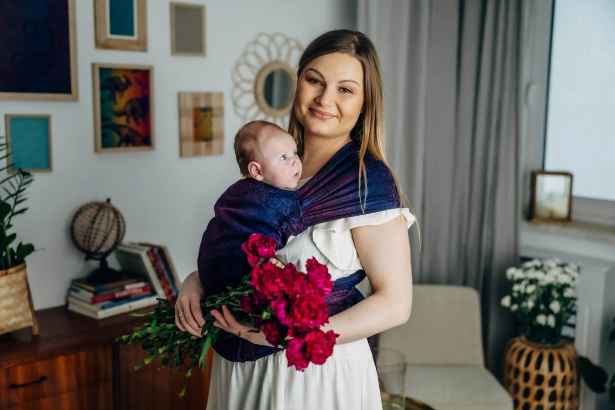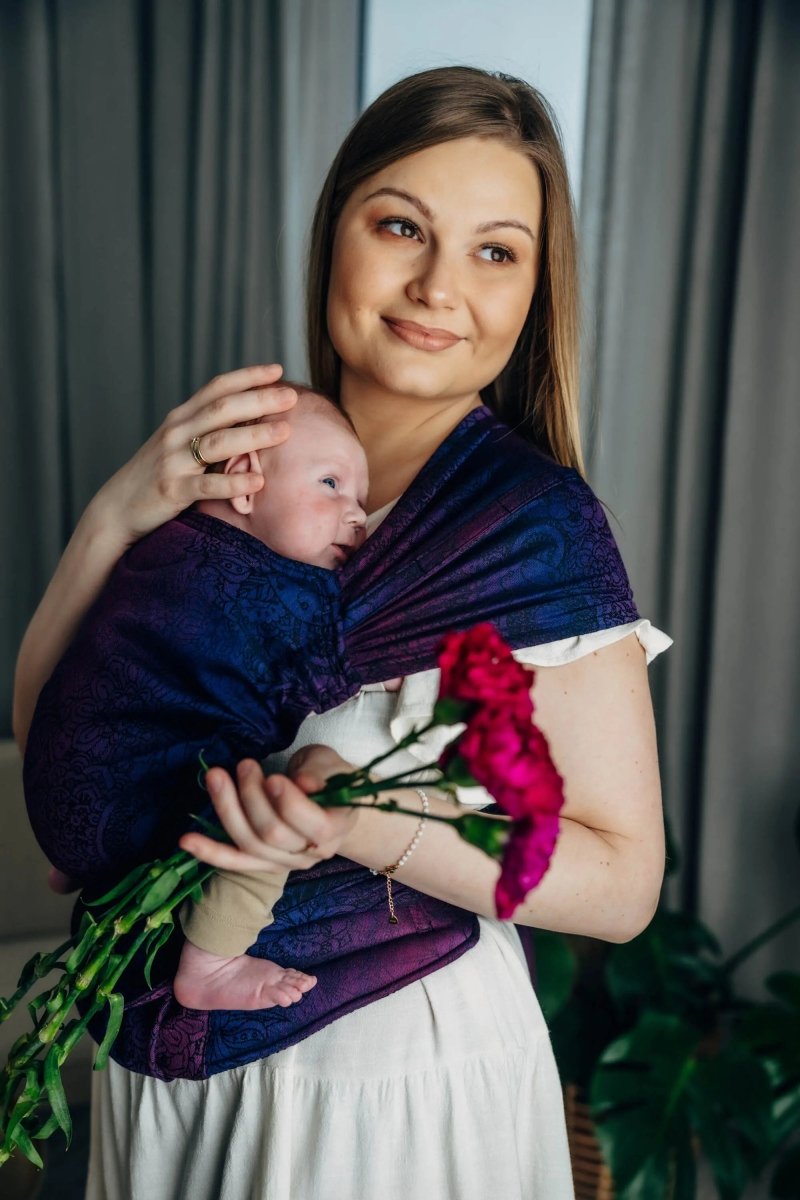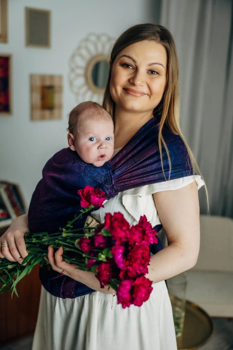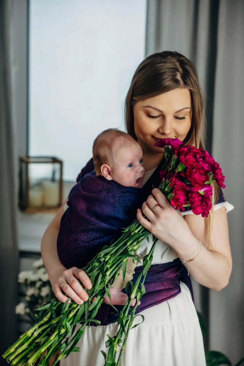 Wild Wine. Bouquet Half Buckle by LennyLamb. From birth to about 24 months, a comfortable carrier that is easy to use and distributes weight well.