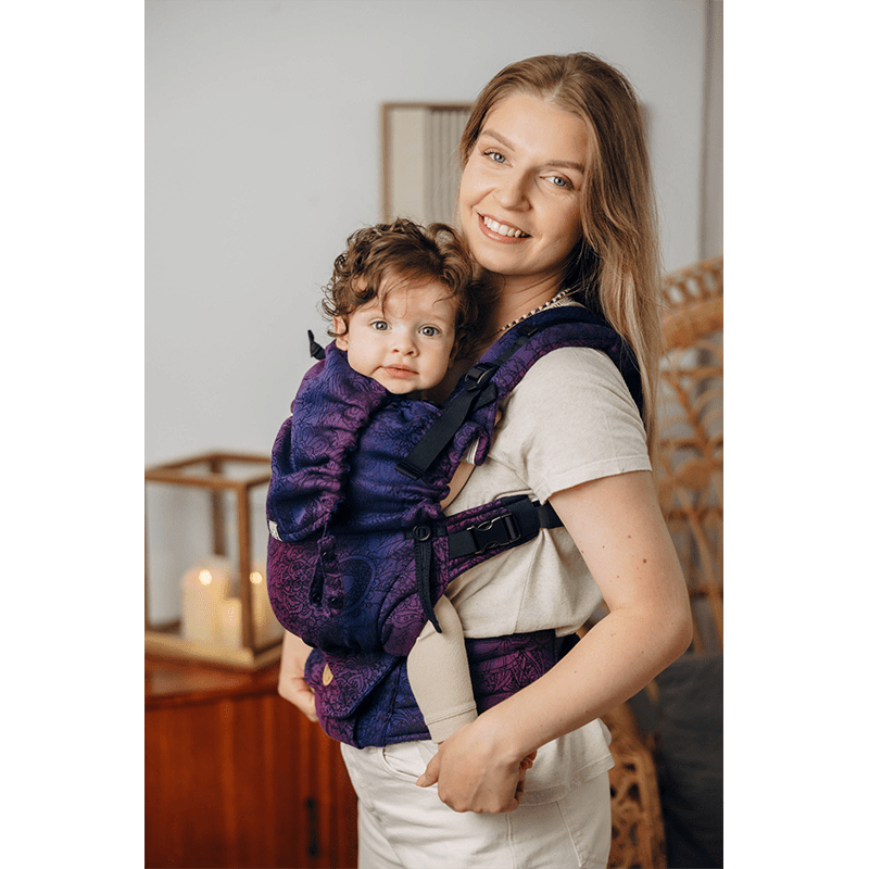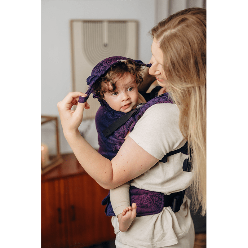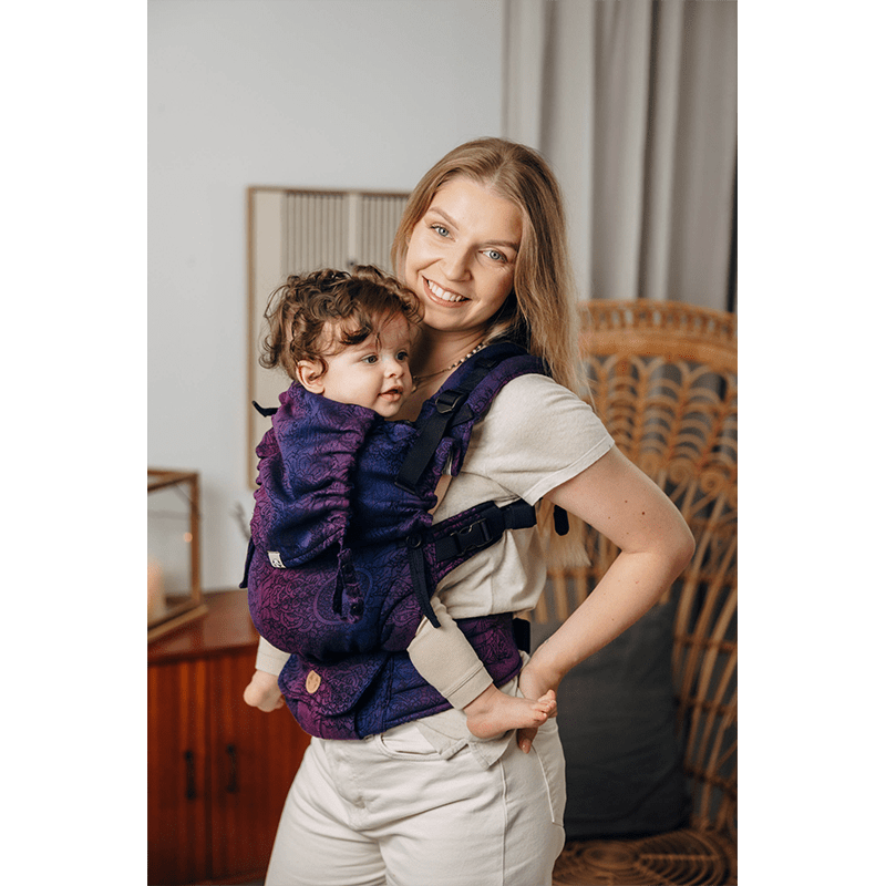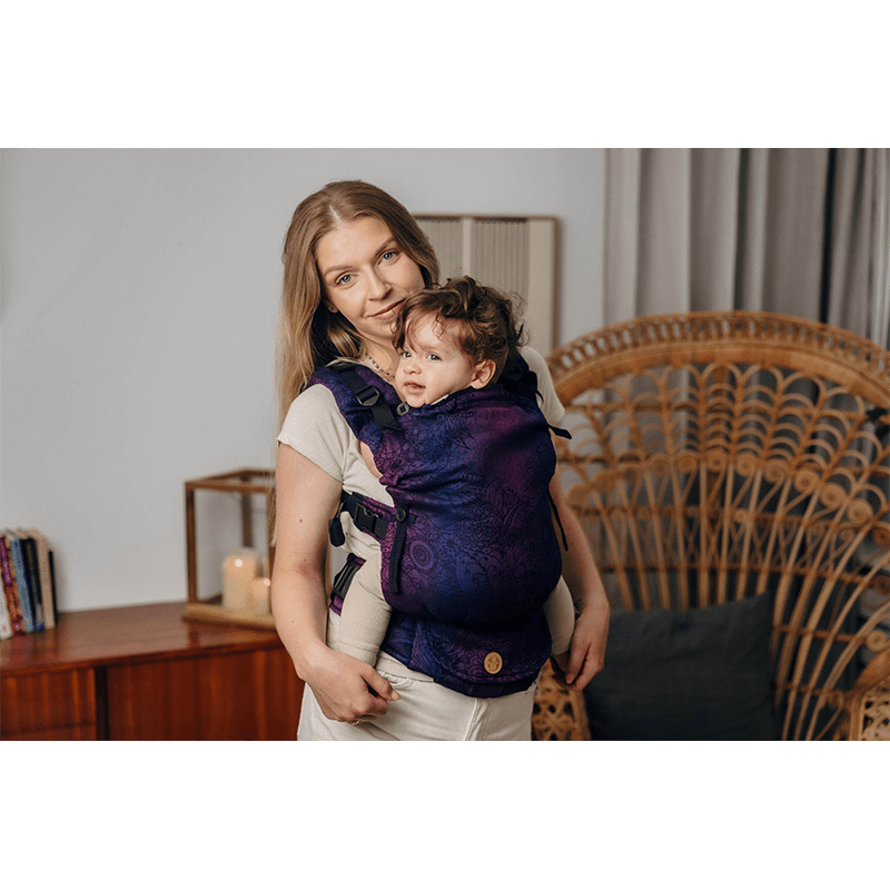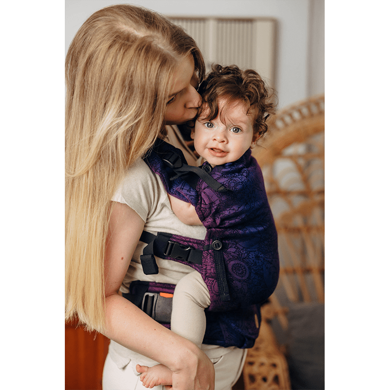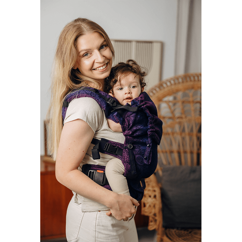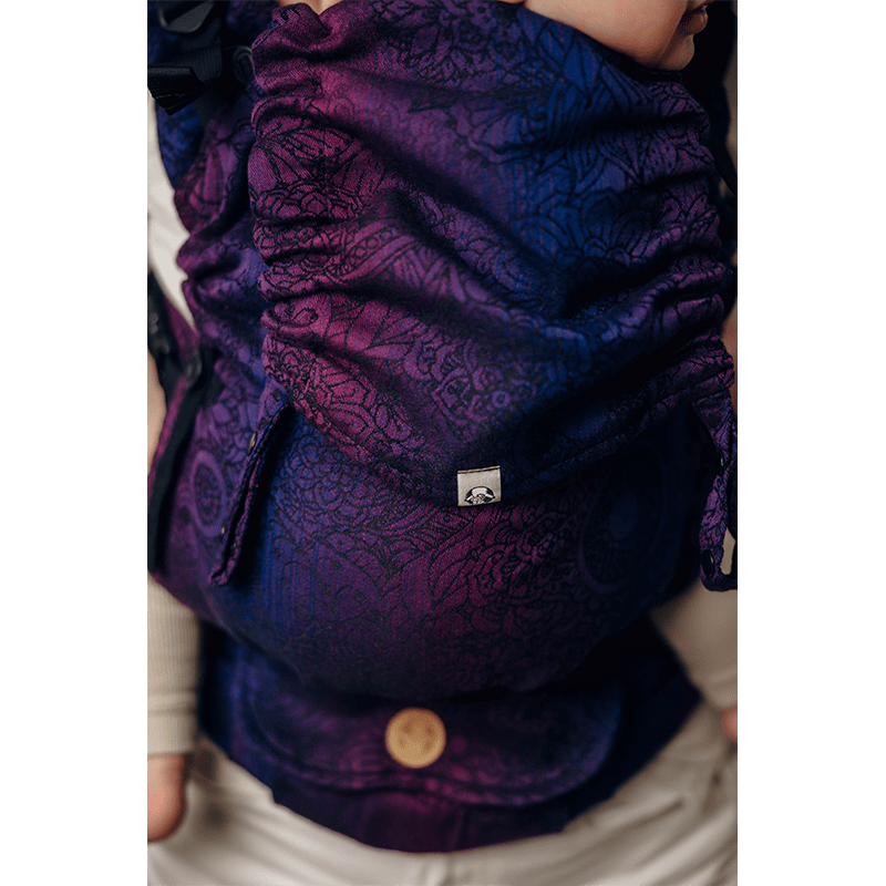 ATTENTION: Actual colors and pattern placement may vary from pictures. The color of the buttons can vary from the one presented in the pictures. Depending on the LOT of the product, the straps regulating the size of the carrier's panel can be solid black or in the colorway of the carrier.